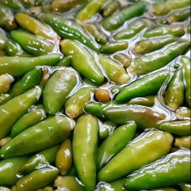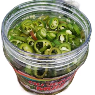 Basuh dan potong lada hijau ikut kesukaan anda. Enak dimakan bersama bubur sup ayam atau dijadikan sos pencicah dumpling. Biarkan betul-betul sejuk baru masukkan jeruk ke dalam balang yang kedap udara.